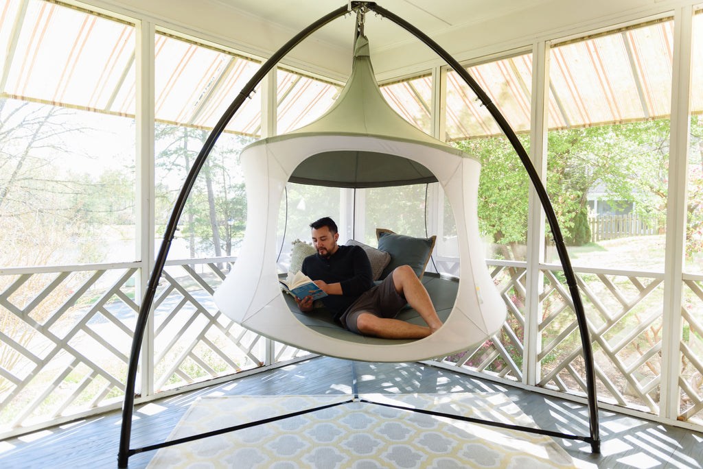 Inspired by the Magis Spun Chair featured in the New York MoMA, the TreePod Cabana offers a sleek whimsical design, that is the ultimate in comfort. The silver mesh sided Cabana provides an open 360 degree view and airy place to relax, indoors or out! Available in a variety of sizes, & accent colors the Cabana is at home in any environment.